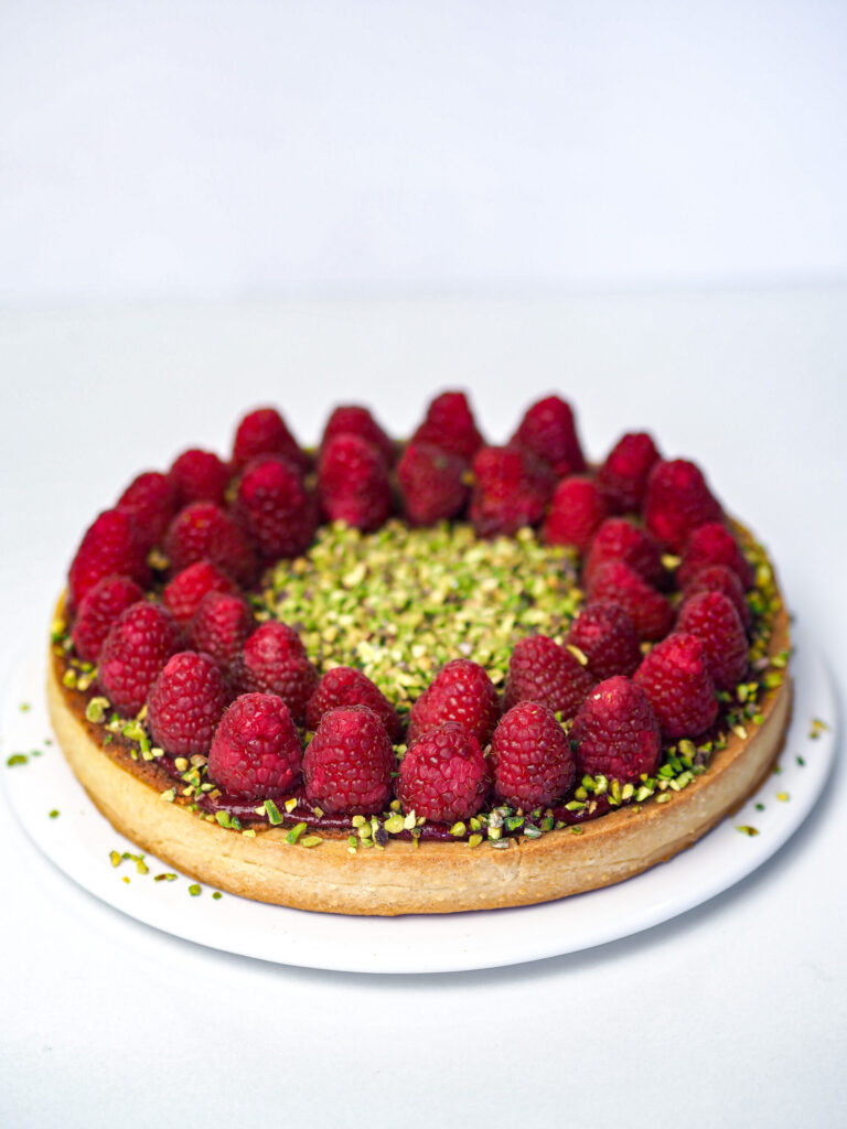 Crostata frangipane pistacchio e lamponi
