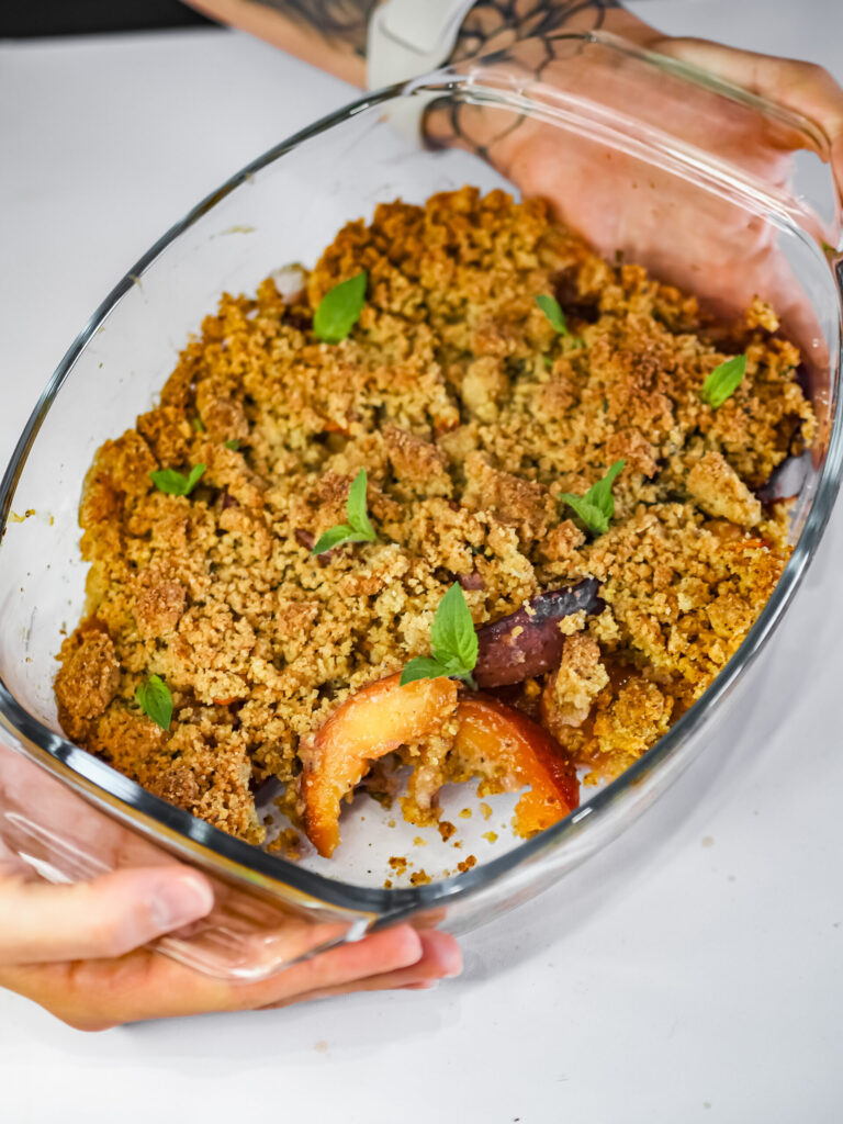 Crumble pesche, menta e pistacchio