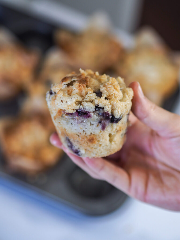 Muffin mirtilli e cioccolato bianco con crumble